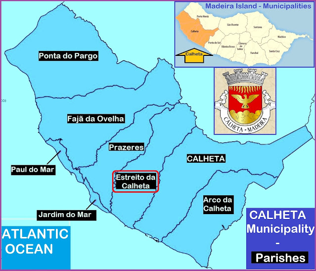 The SΓ£o Bartolomeu stream, to the east, divides the Estreito da Calheta from the Parish of Calheta, and the Ribeira Funda, to the west, divides it from the Parish of Prazeres.